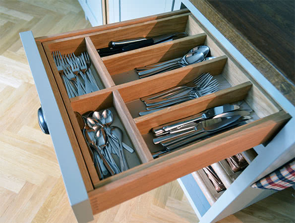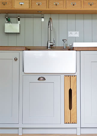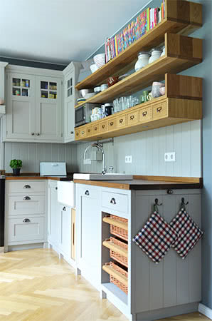 Puristischer, schöner Shaker-Stil in „Hardwick White®“, mit geräucherter Eiche-Arbeitsplatte